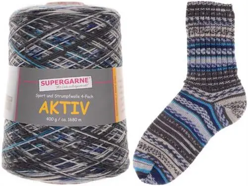 AKTIV sock yarn 4-ply SUPERWASH on 400g cones.